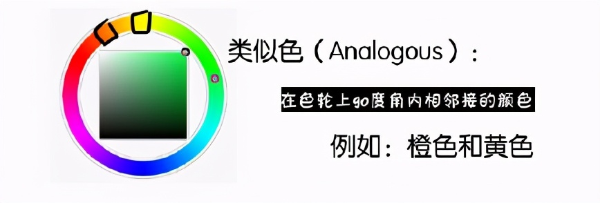 在色轮上9o度角内相邻接的颜色