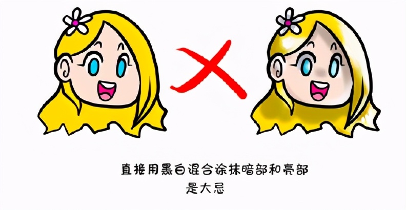 直接用黑白混合涂抹喑部和亳部是大忌