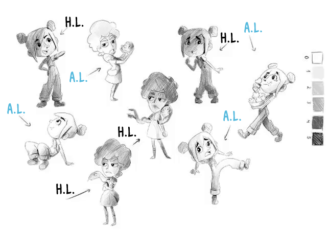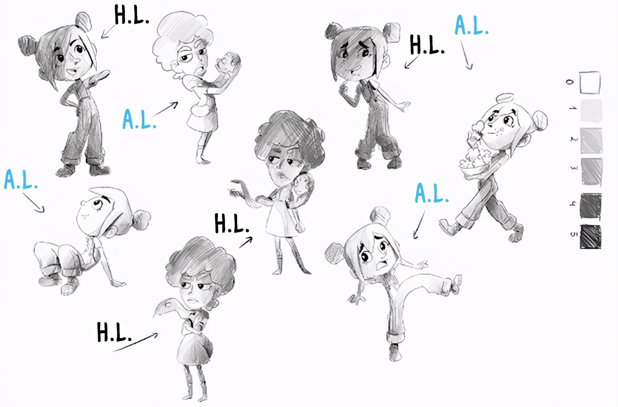 第一步是画出核心阴影和高光,以了解光线从哪里来。然后,我使用我之前创建的灰度作为参考,一个一个地上上下下。