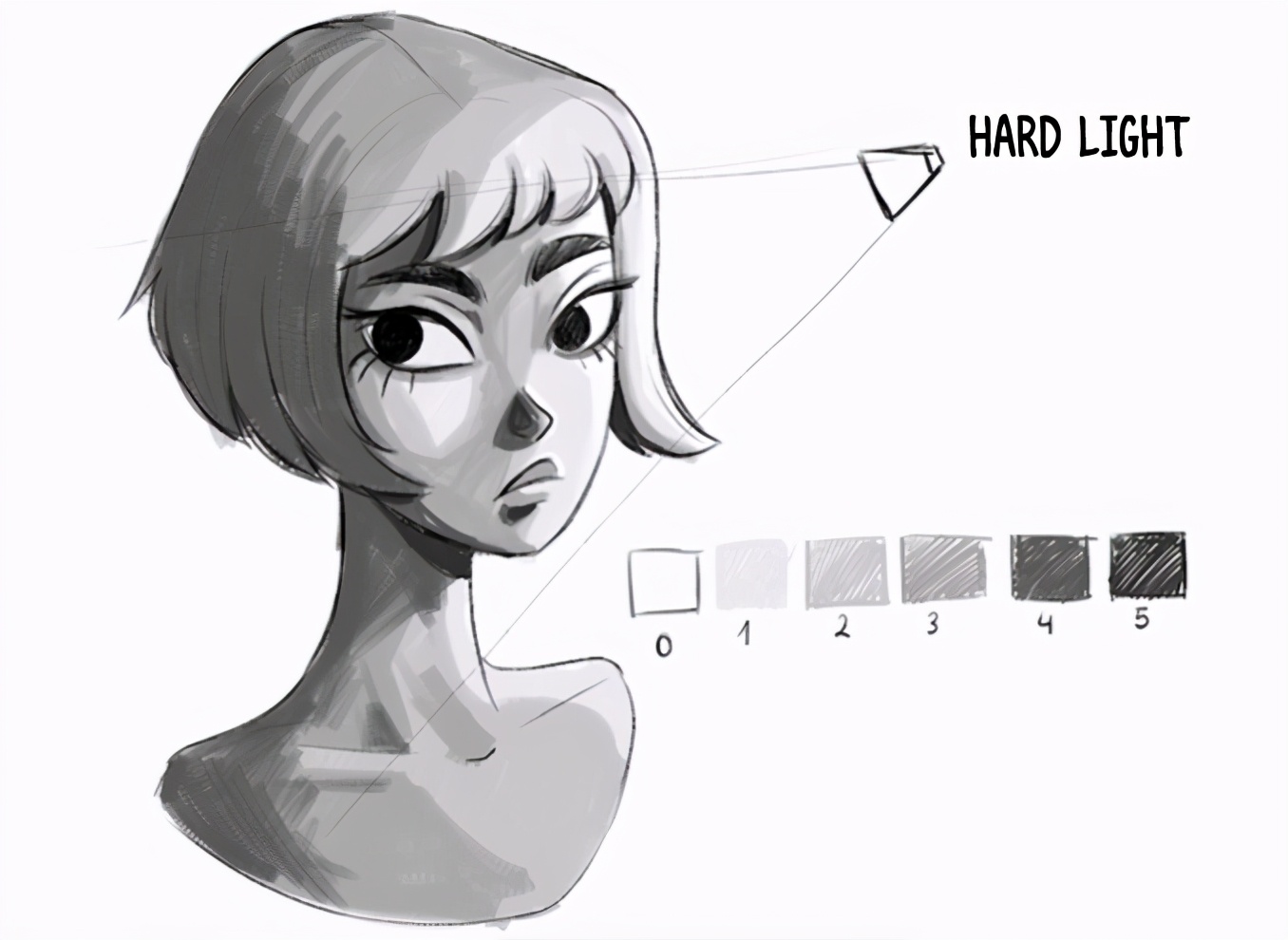 在最右边是最轻的光色调,而在最左边是最黑暗的阴影色调。光影是一个复杂的学科。甚至还有专门致力于光影的艺术家。