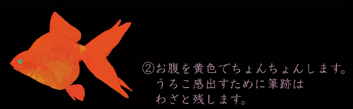 用黄色来提提肚子。为了能感觉到鳞,故意留笔迹。