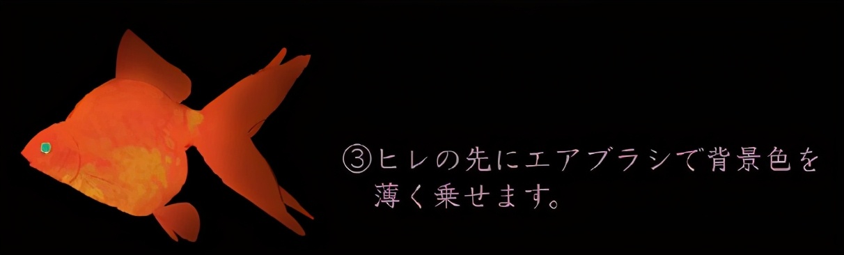 用喷笔在鳍尖上薄薄地涂上背景色。