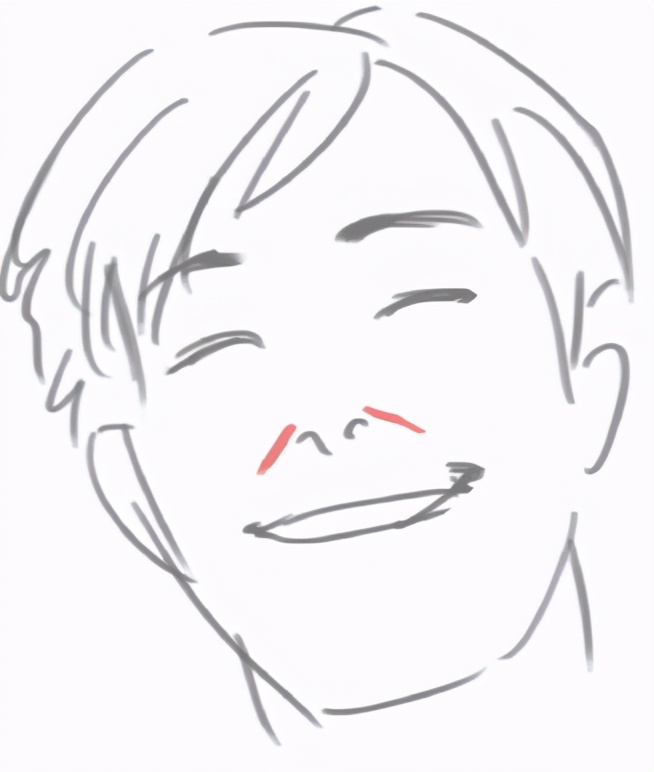 1、颧骨附近肌肉隆起(想象一下面包超人? )嘴角边的短线其实就是描写这个隆起的