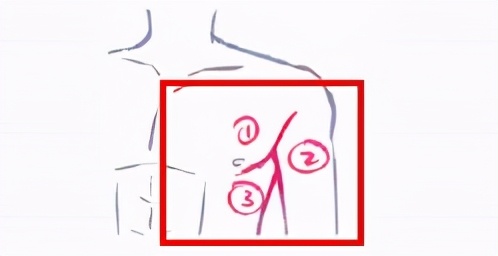 3、注意胶下部分的肌肉分布。最外层是胸部,中间部分是胳膊,最后面一块肌肉是后背;