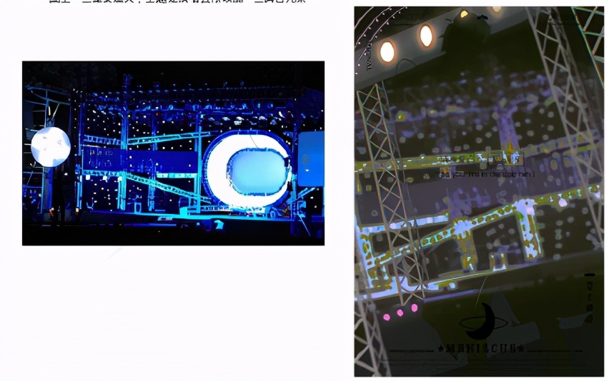 先找个照片素材,裁剪一下,拉曲线调渐变映射,再高斯模糊一下,拉一些泛光或者色相差让舞台的光更明显一些