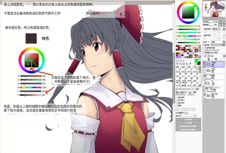 亮度、彩度从上面的插图中被绿色四边形包围的范围内的某个地方选择。这次是在重复视觉的正中间进行拾音