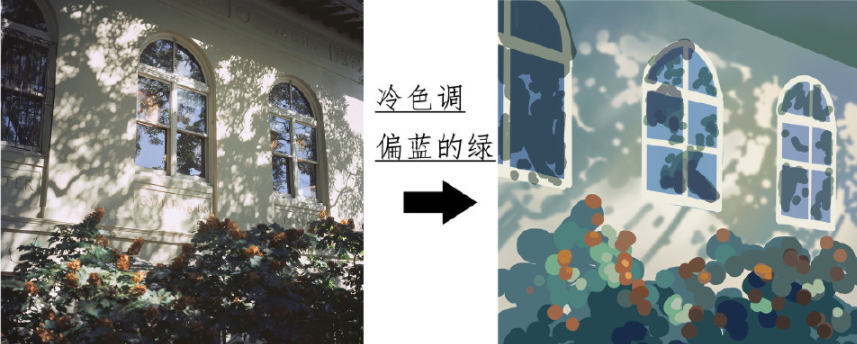 左边我之前尽量避开画绿色调,(疯狂往蓝色调里偏)偶尔画一幅也可以看出颜色要么很脏要么很单调。