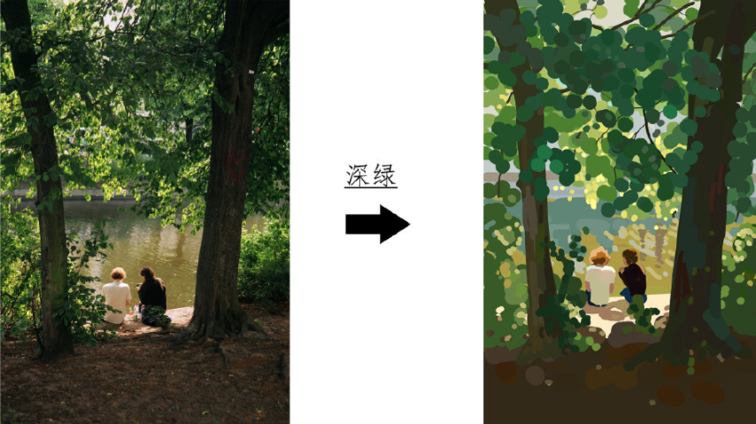 右边可以明显看出练习后的进步,绿色特有的的干净、治愈、生机勃勃的感觉慢慢出来了。