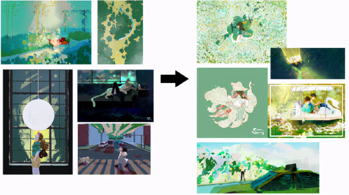 可以同一个色系的照片多找几张,比如想练习画绿色调,那就先找绿色调的照片,亮绿色、深绿色、偏黄的绿色、偏蓝的绿色、纯度高的绿色、纯度低的绿色....都找几张来作为参考画小色稿,这样画完后你对不同的绿色的理解就会更深,其他色调也是这样练习的。