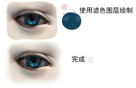使用正片叠底和覆盖图层绘制下半部分瞳孔
