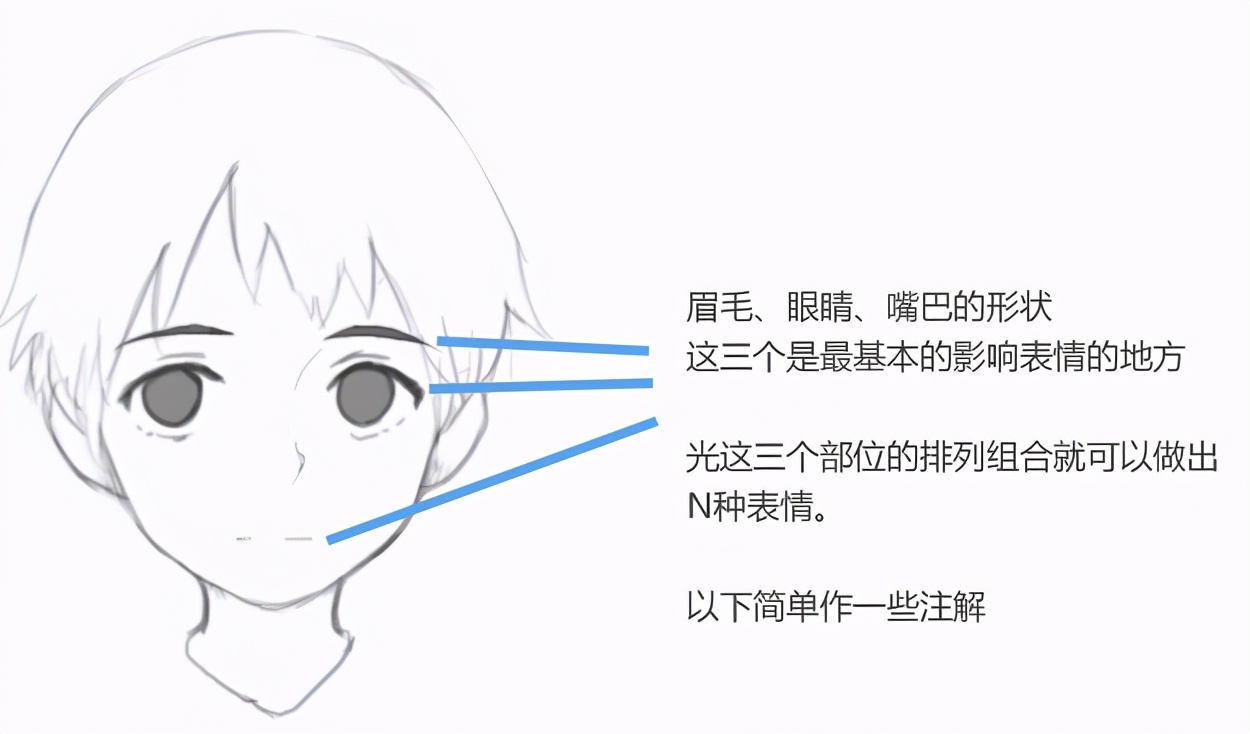 先画一个无表情的大众脸。