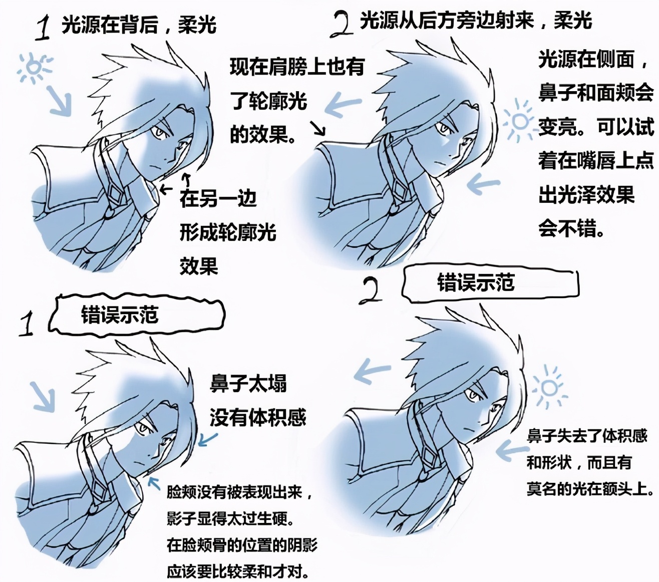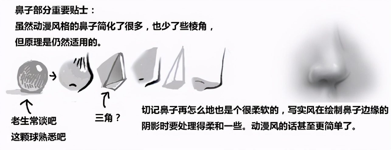 虽然动漫风格的鼻子简化了很多,也少了些棱角,但原理是仍然适用的。