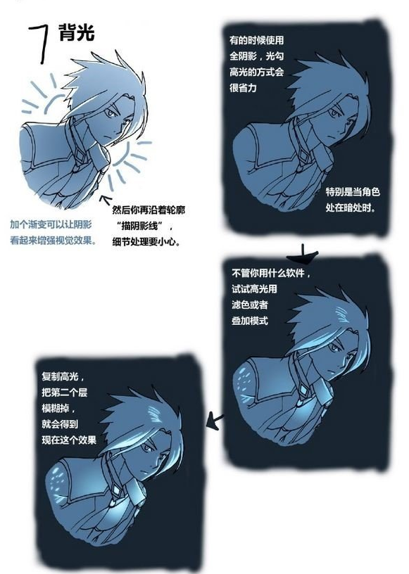 很多新手在处理阴影细节的时候,会喜欢把描线弄出刺猬索尼克的效果。我个人不用这种方式,而且大部分画手很少用这种方式,不推荐哦。