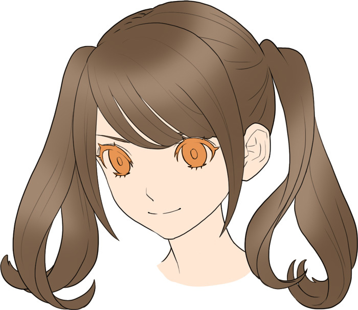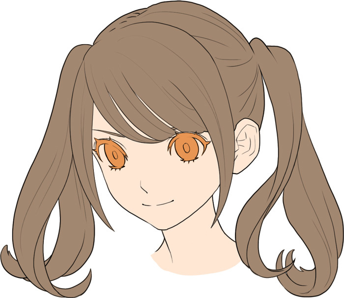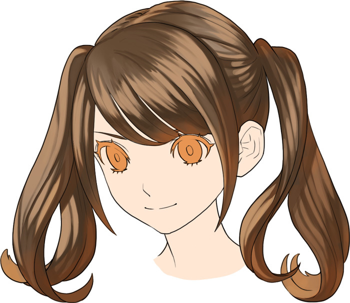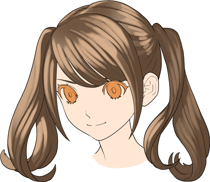因为头部是球体,所以在球体中的灯光的基础上给予高光和阴影。双马尾的部分沿着头发的流动,突出的部分明亮,关于凹陷的部分变暗了。因为双马尾是一束纸,所以用对丝带的照明来考虑的话,应该很容易配合。