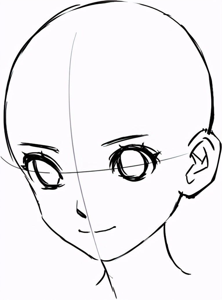 首先和上次一样,从头部开始画。为了不破坏平衡,作为基础的头部的形状,为了不破坏顶部和侧面,有意识地画出椭圆、圆形。