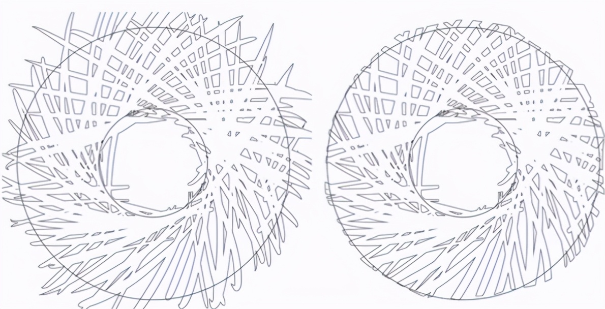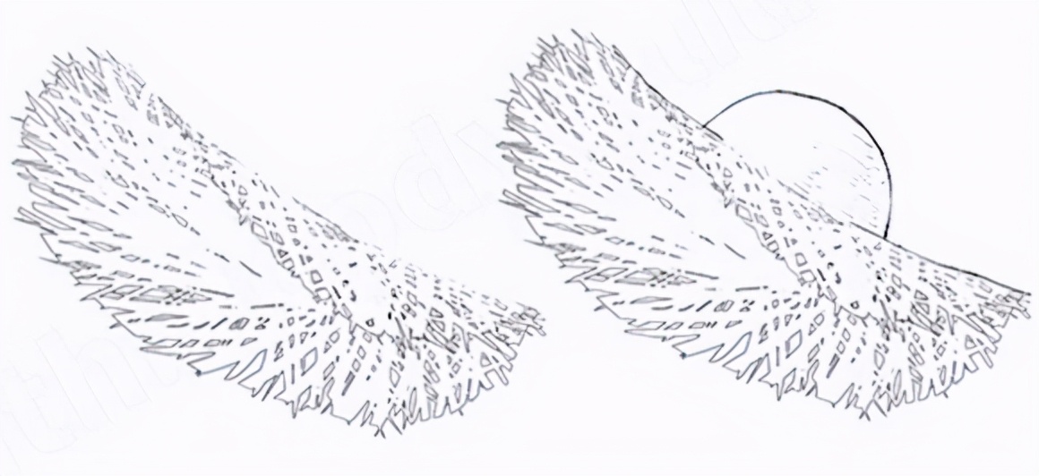 3、走完一圈后,画相反的线。 变成下图。用橡皮工具擦掉圆形。唾沫最好不要太整齐,关掉时要注意。