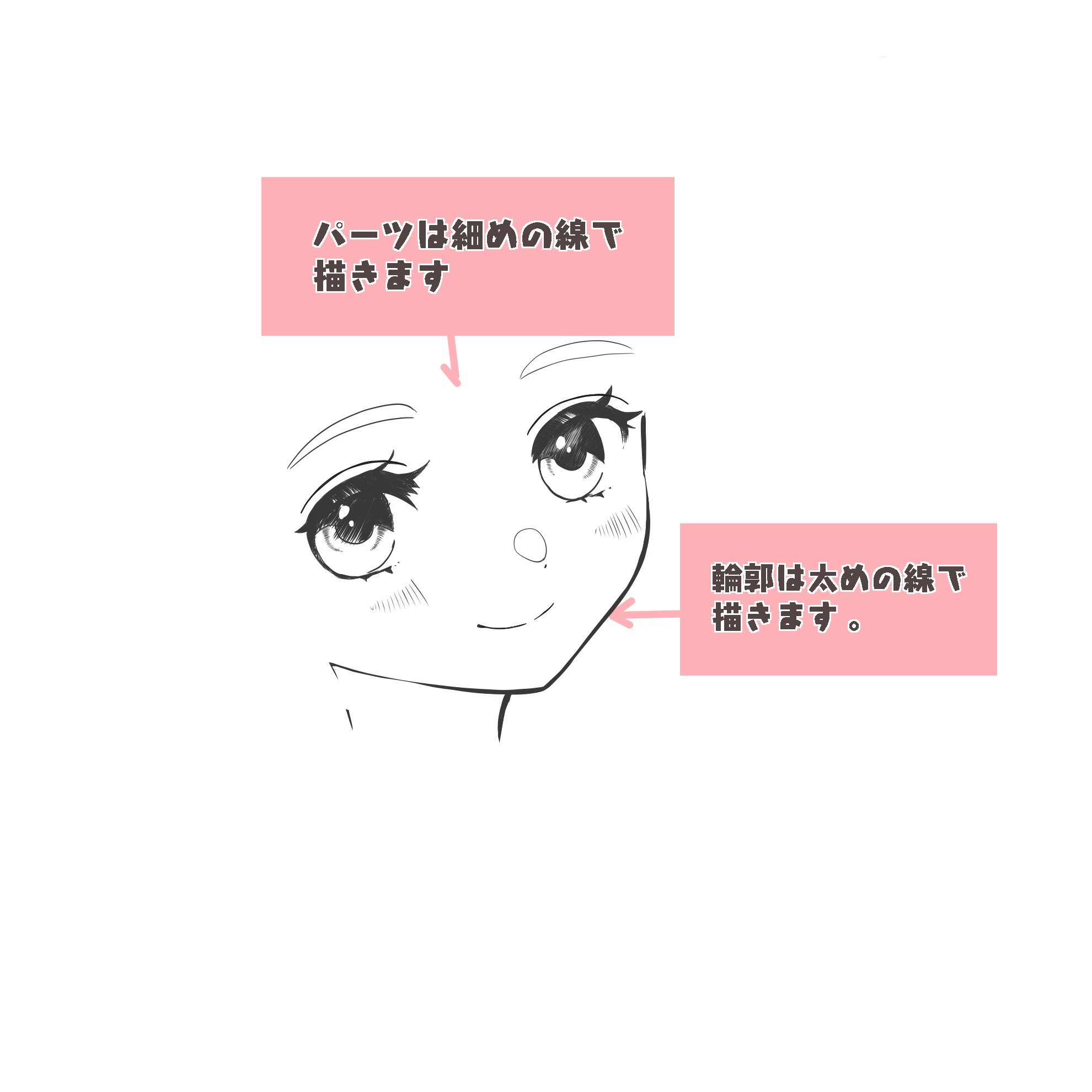 用较粗的轮廓线和稍细的线条画出脸部的各个部分。
