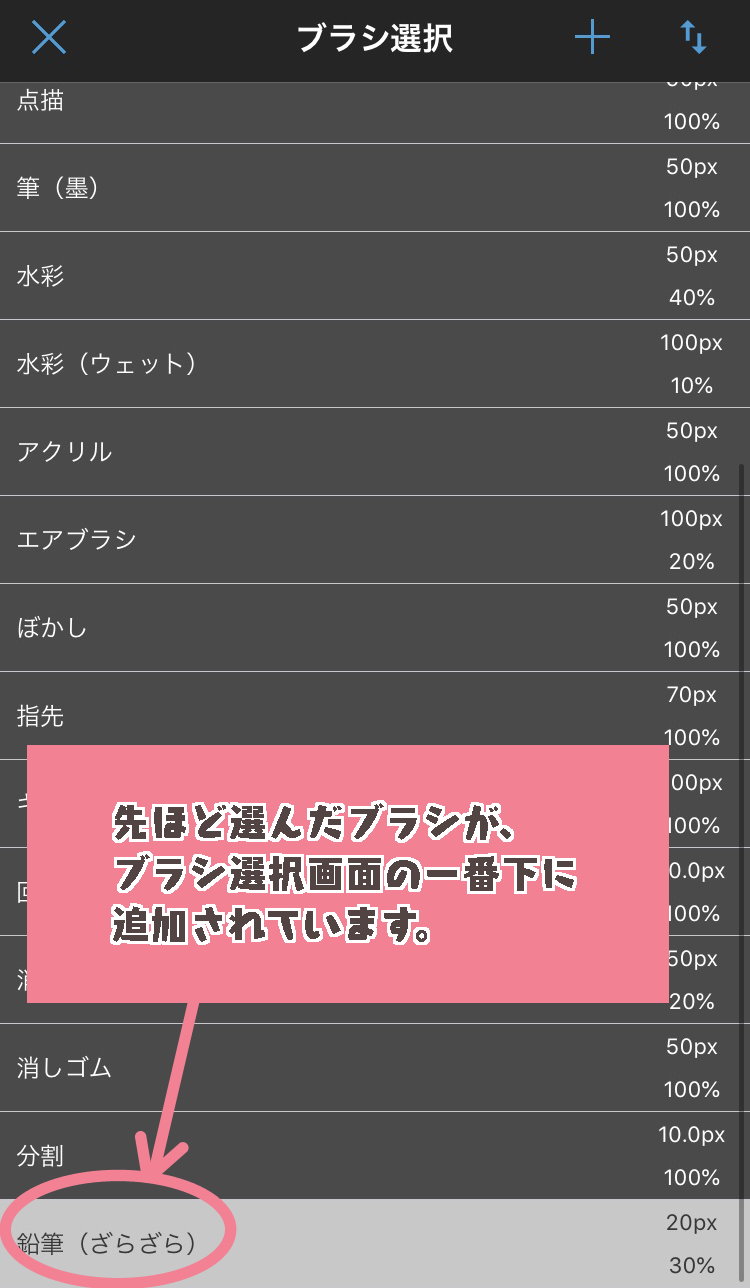 你选择的画笔被添加到 “选择画笔 “屏幕的底部。