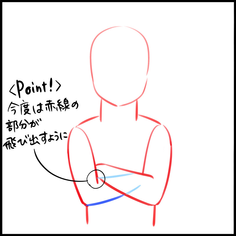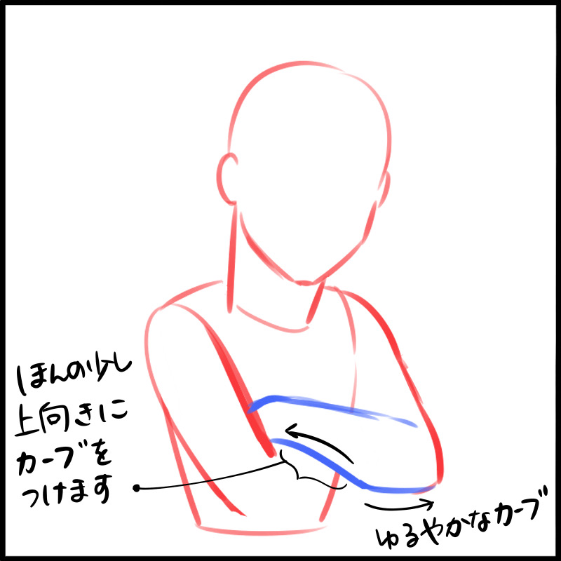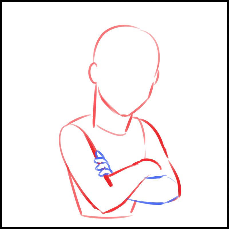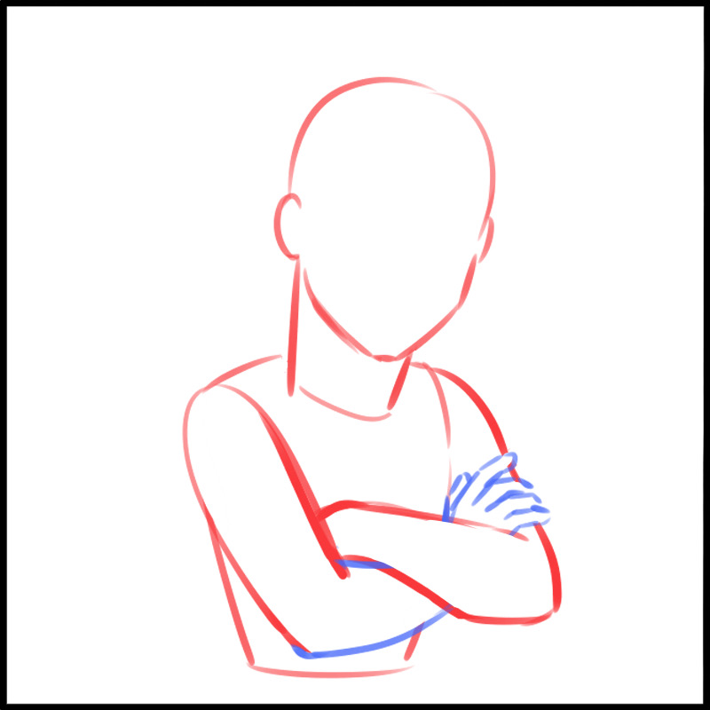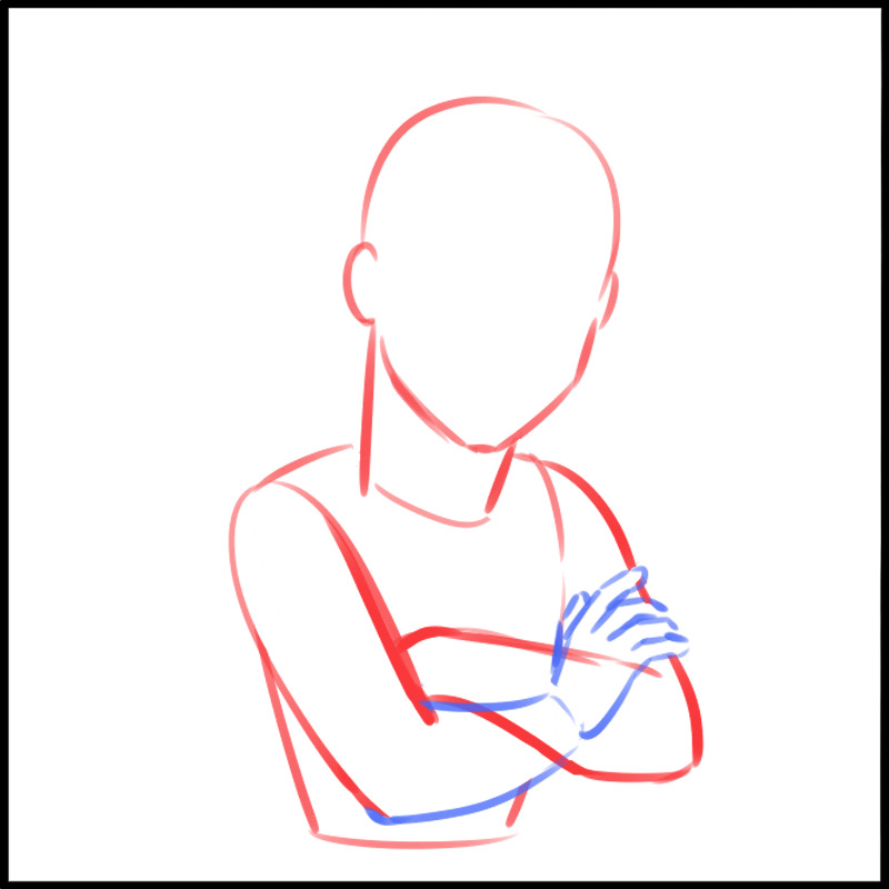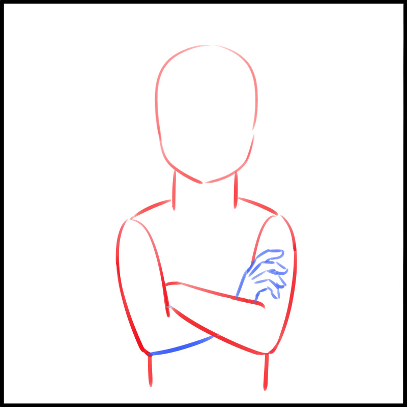 首先,让我们画一个双臂抱胸朝前的姿势。