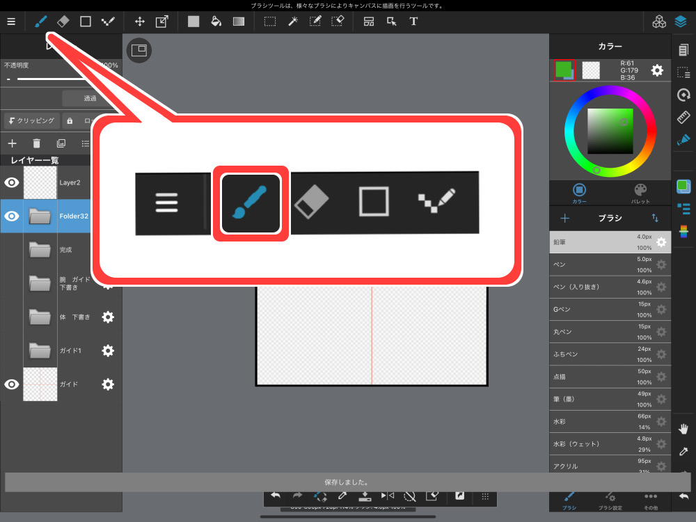 要使用铅笔画,从工具图标中选择笔刷图标。