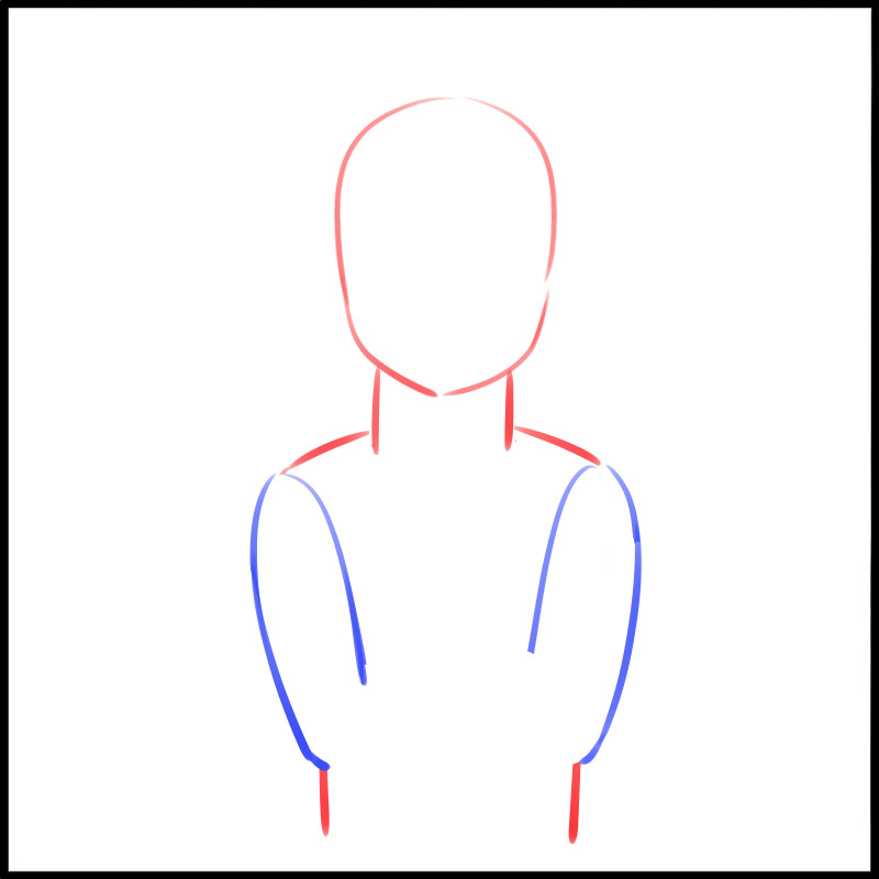 画出头部和躯干,除了手臂之外,都朝前。