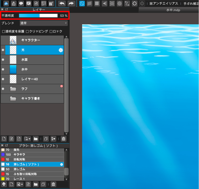 我们希望颜色更淡一些,所以我们要降低不透明度,让光线更柔和。