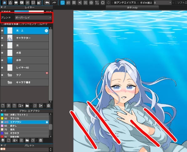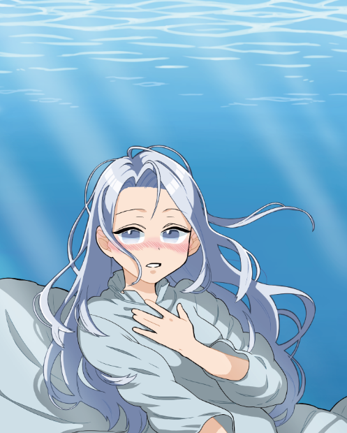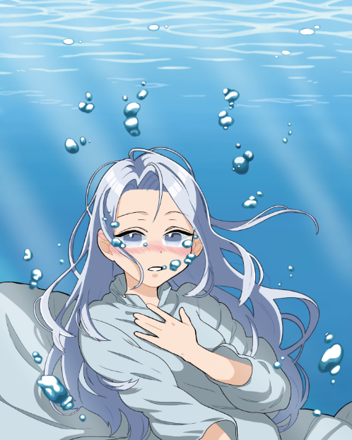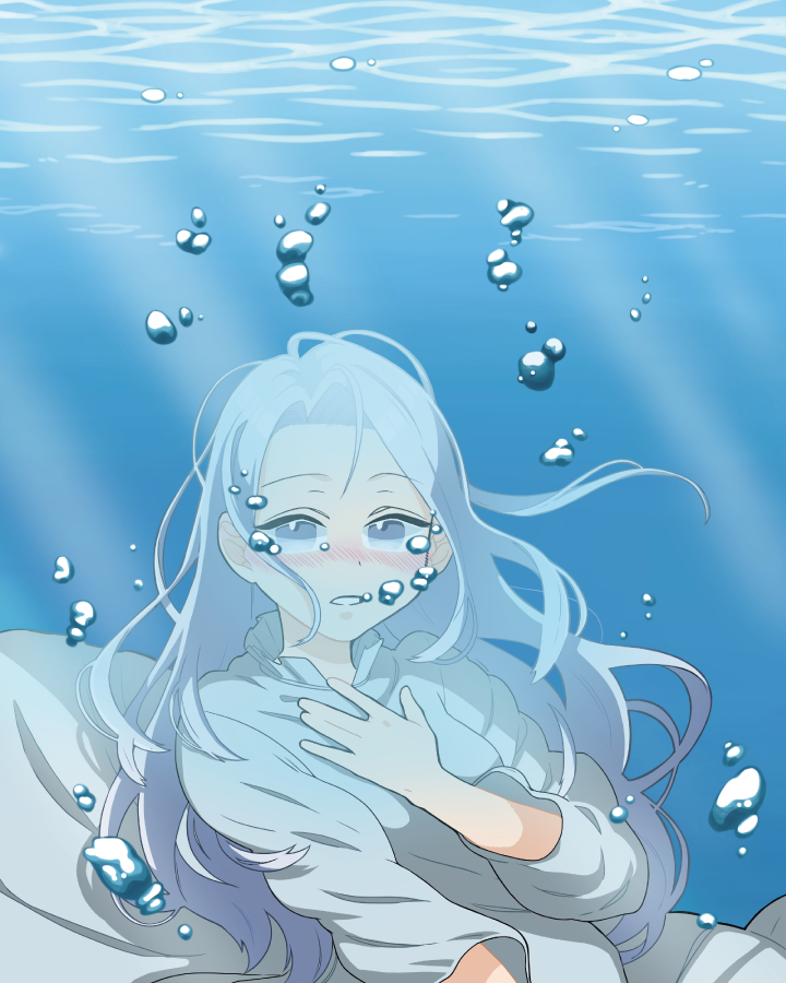 如果把她的长发弄得蓬松,衣袂飘飘,就更容易表现水下的气氛。