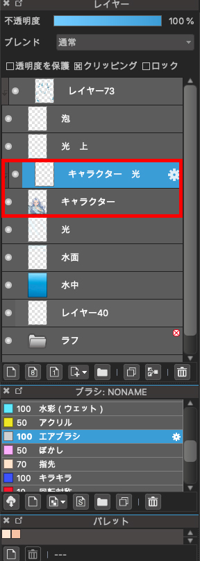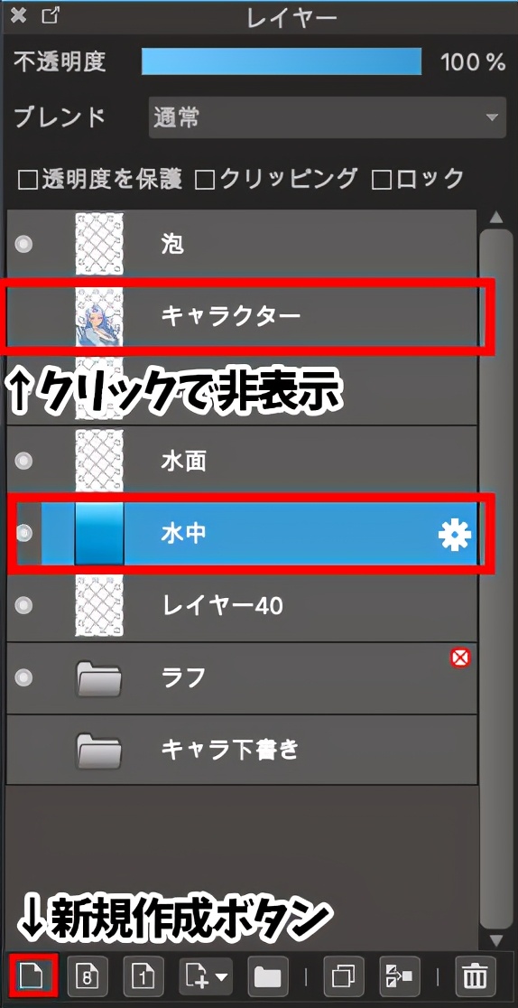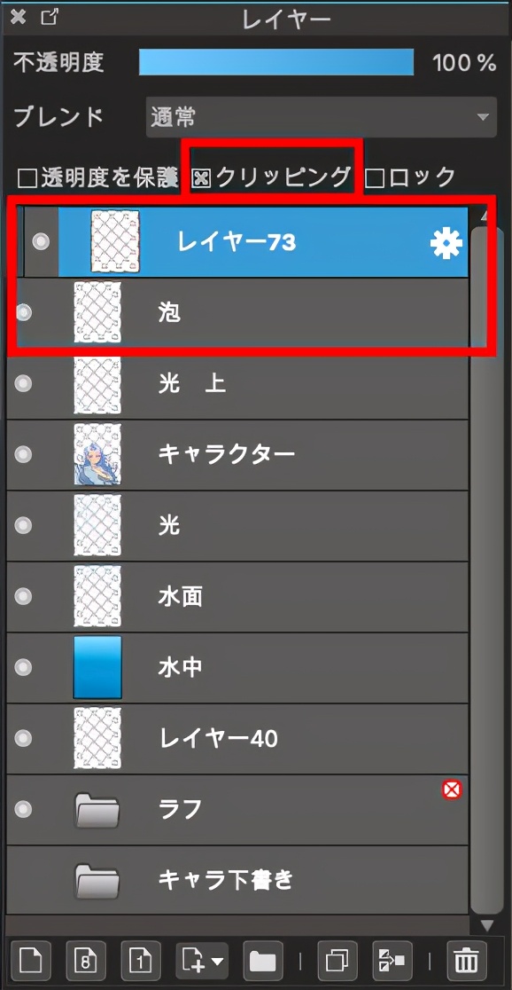 接下来,在创建气泡的图层上新建一个图层,然后点击剪切。