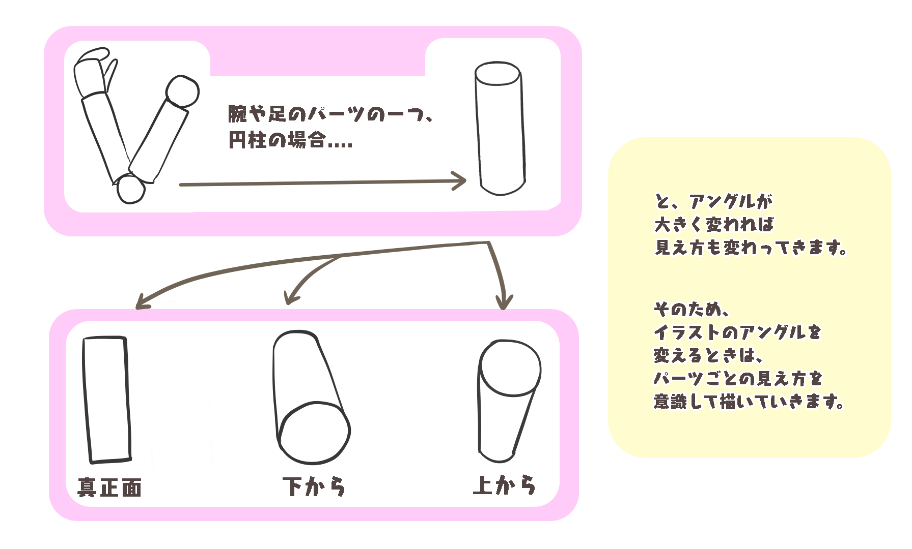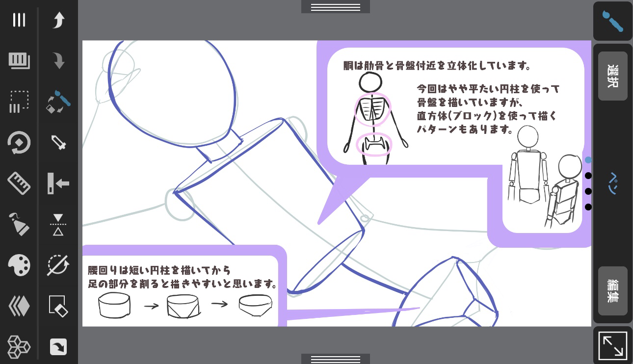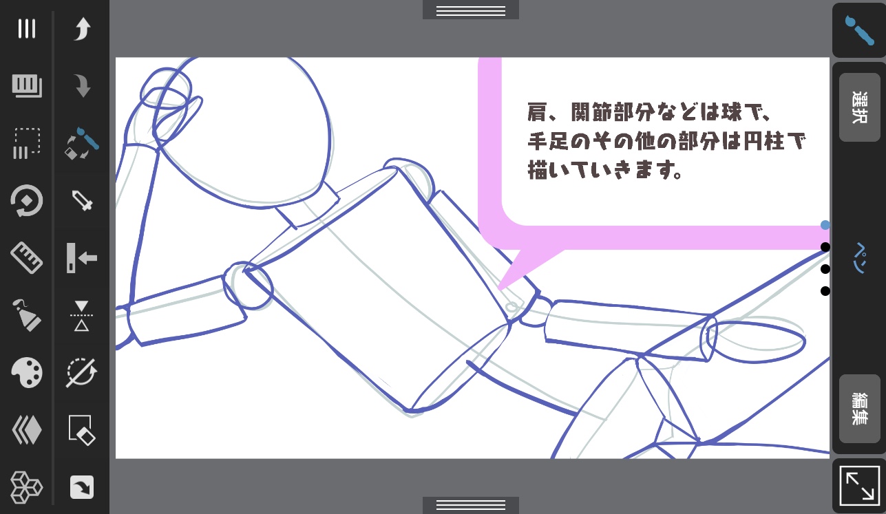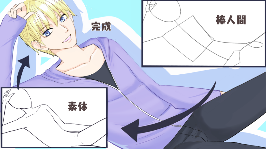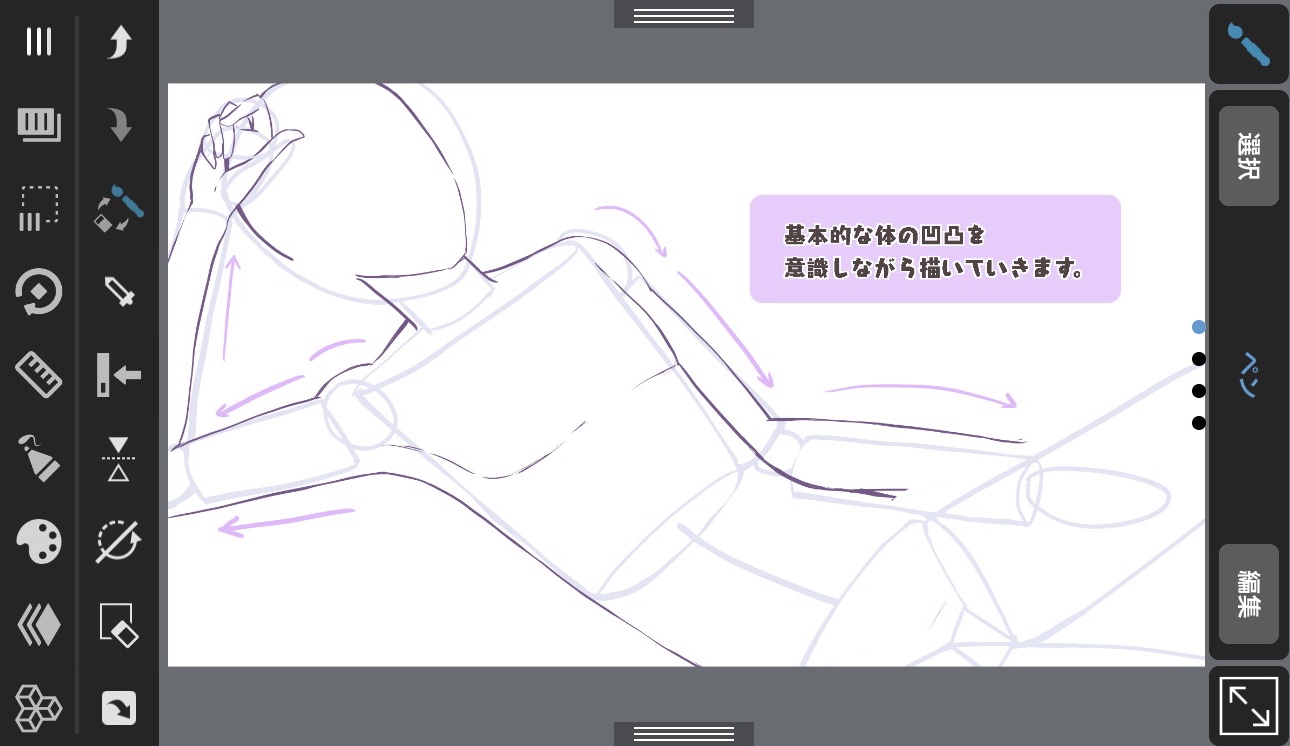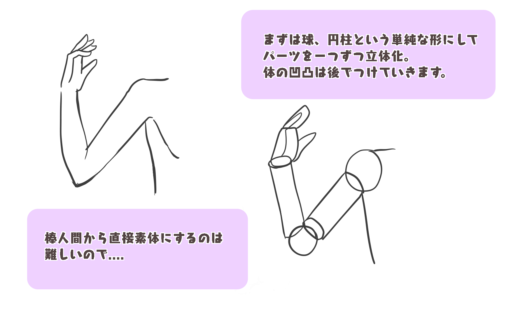 先用 “使之立体化 “的方法画出身体的轮廓,后面再做 “增加凹凸 “的工作,就会变得容易画了。