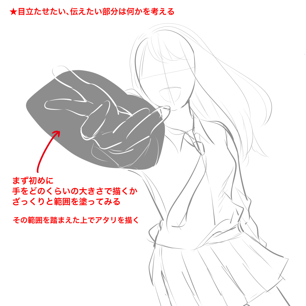 在这种情况下,我想画一个大手掌,所以我用画面的这个区域作为手掌空间。