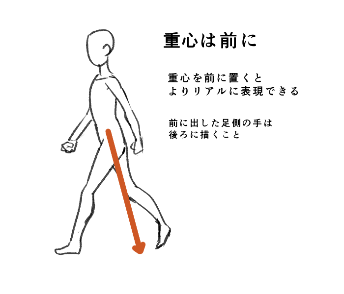 塑造行走的人物形象的另一个关键是把身体的重心放在前面。