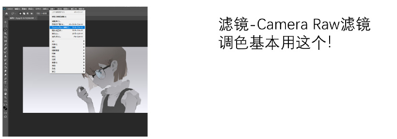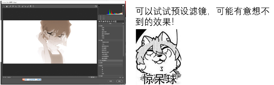 1、把画完的图合并成jpg,拖进ps,点开Camera Raw滤镜