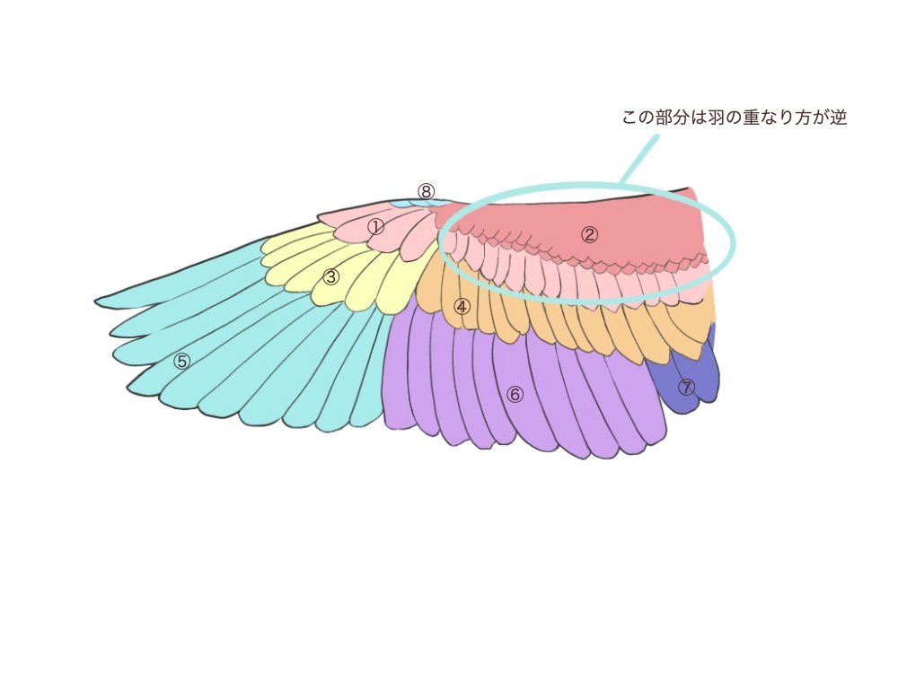 如果你想更详细地了解,你可以把翅膀总共分为8个部分。