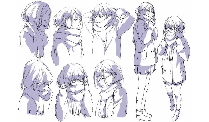 当你改变人物脸部的方向时,你可以画出不同的构图。