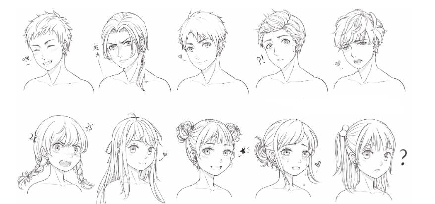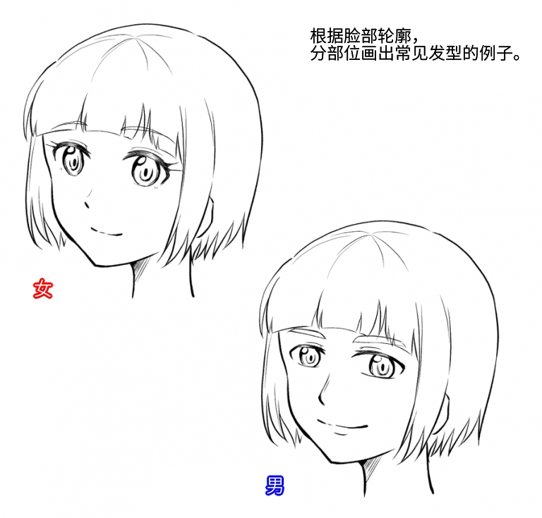 初学者常犯的错误是,画的男女不一样,换了发型,最后却画成了一样的脸,结果导致一个人分不清是男是女。