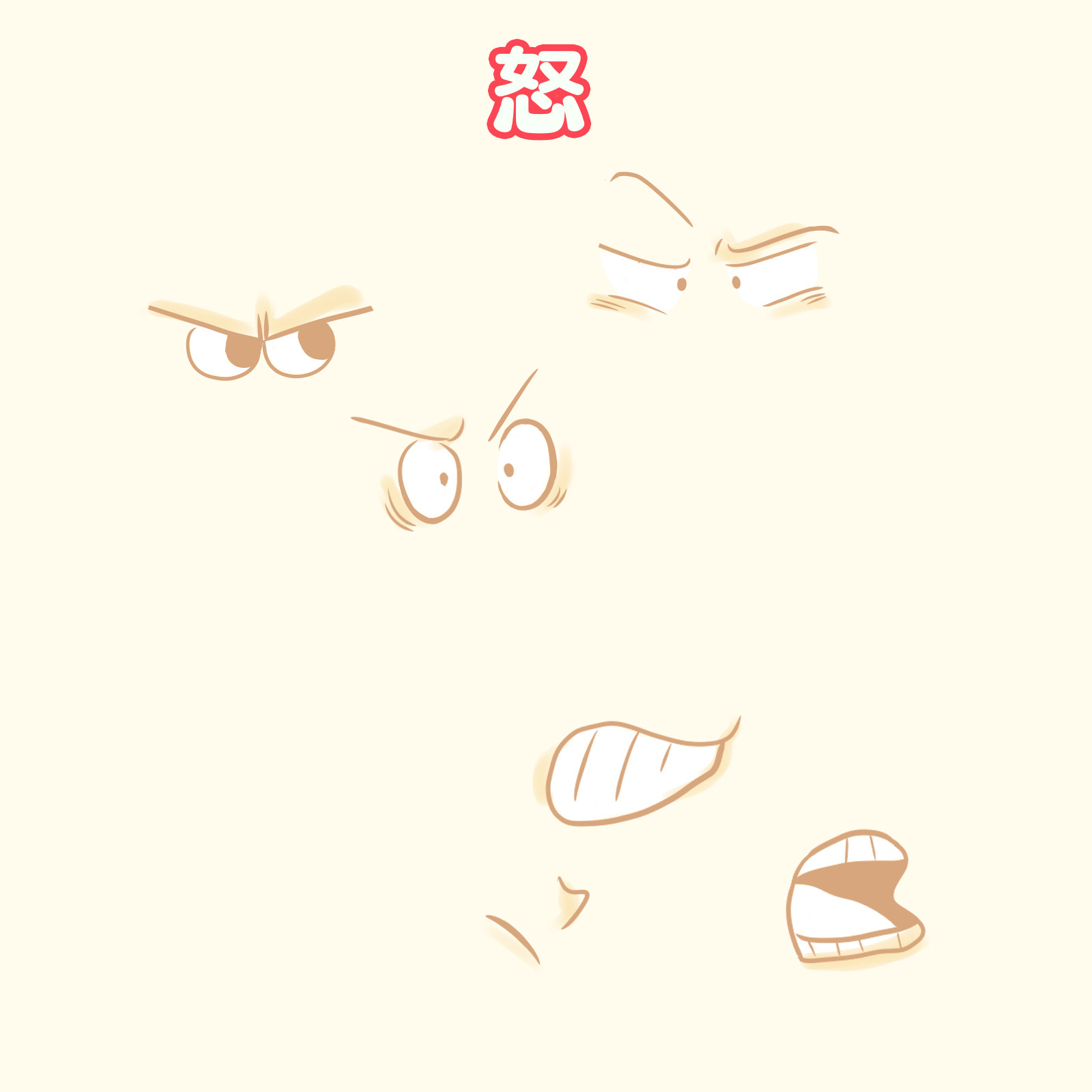 如果你想画出愤怒的表情,可以让每个部分都更加自信,这样更容易显得愤怒。