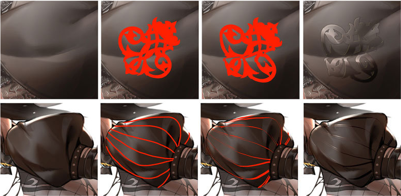我们有时需要增加画面细节,会给衣物建筑部件等叠加花纹,大多数时候想要的图案放到不规整的衣服上效果不是很自然。而置换效果对于不是很整齐的衣服,可以将图案融合得特别自然,更逼真。