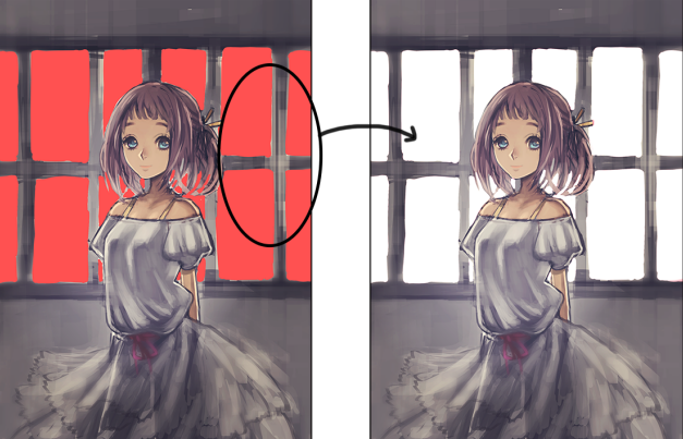 如果在深色(入窗框和衣服的颜色)上涂色,则不会变为白色而保持本色(以本图为例则会变成红色)、