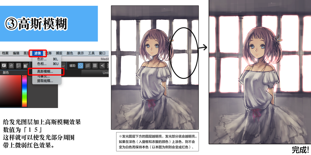 发光图层下方的图层越明亮,发光部分就会越明亮。