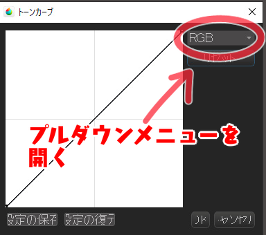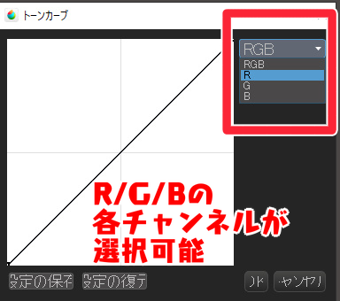 RGB的调整可以从色调曲线画面的下拉菜单中进行。
