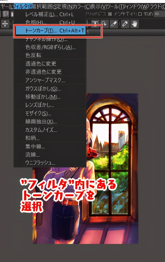 中值涂料在菜单的过滤器中有一个色调曲线。