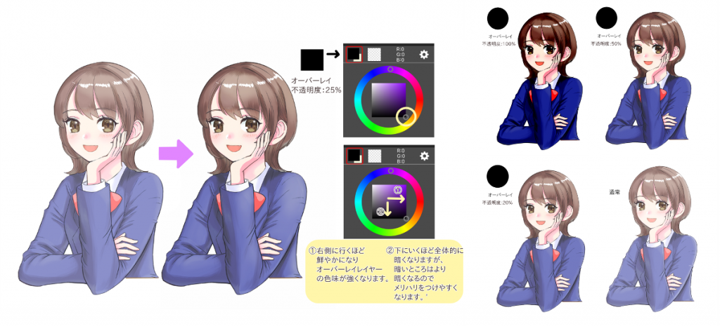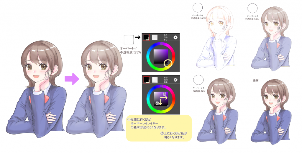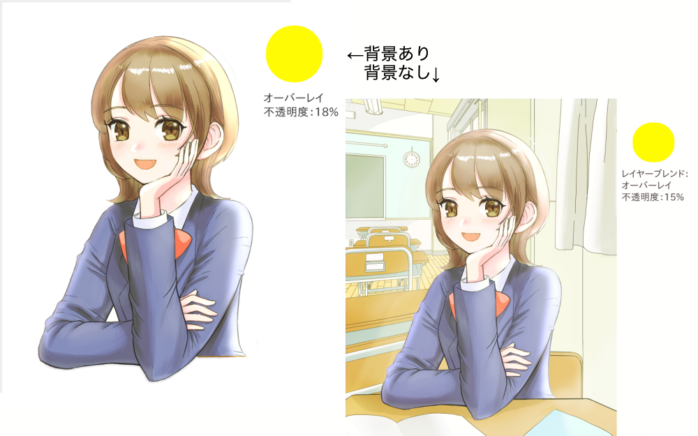 另一方面,使覆盖层上的颜色变亮会给人一种柔和的印象。