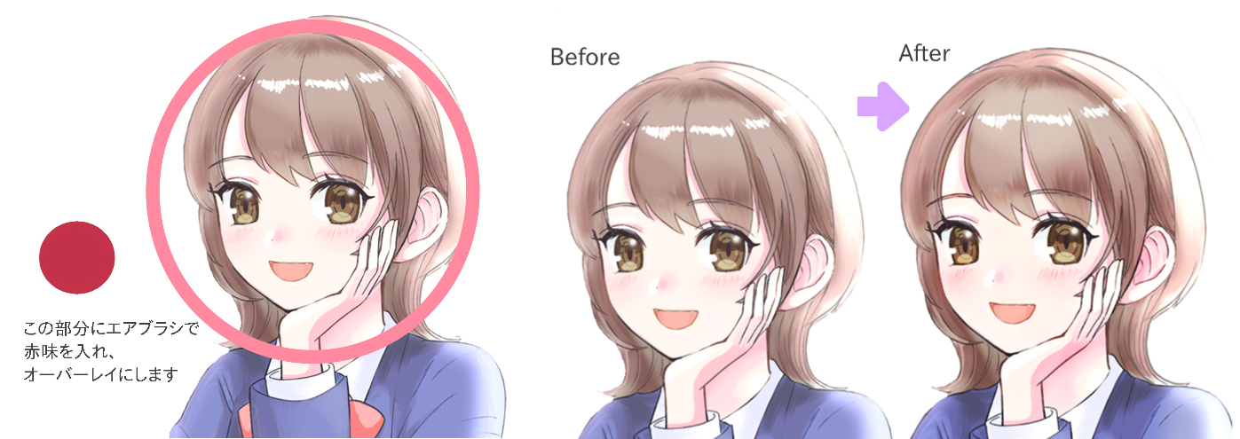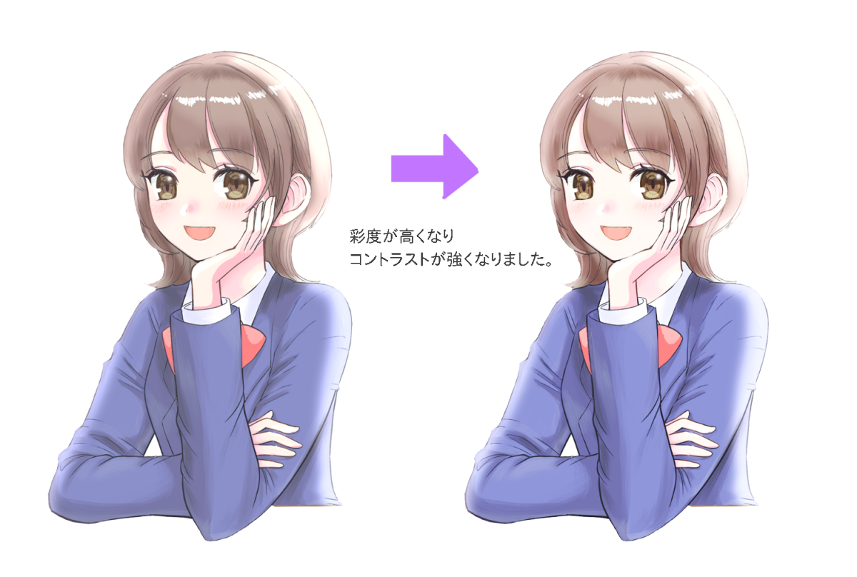 例如,如果您将明亮的颜色放在“您想要更清晰显示的部分”(例如脸部)或“光线强烈的部分”(例如头部)上,您可以发现该部分。