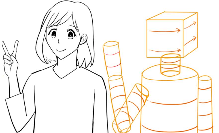 不只是人,小物品、动物、背景……一切都可以用这个圆柱体和立方体代替。