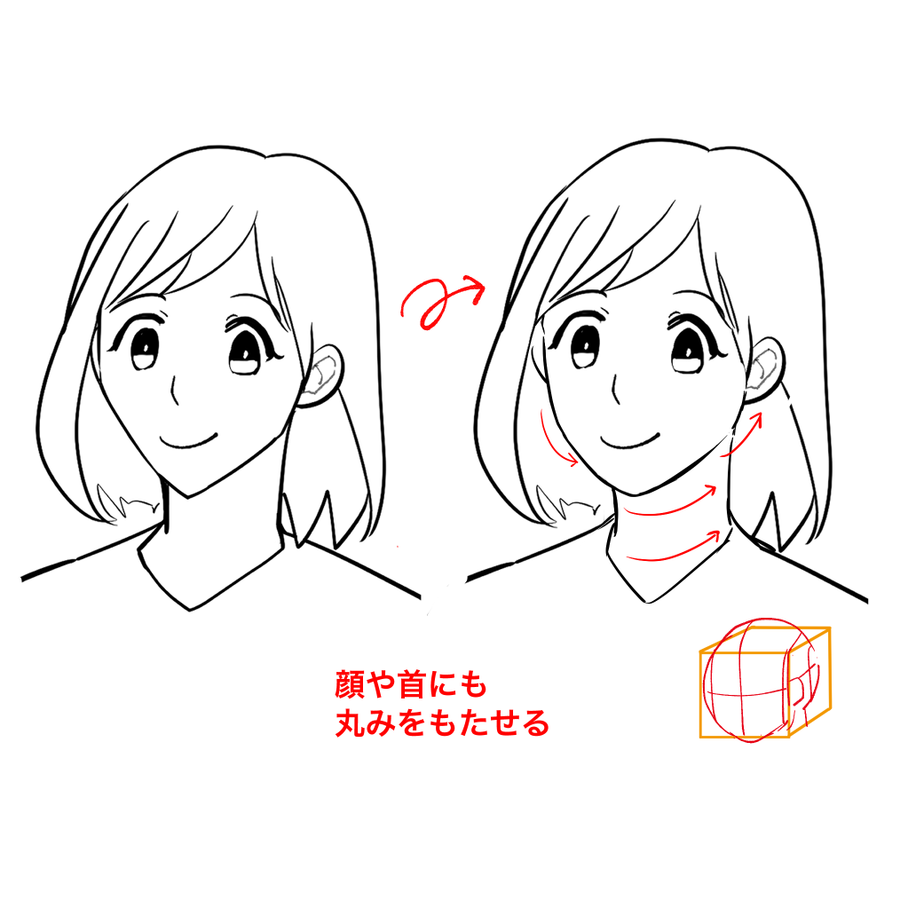 同样对于脸部,将过于尖锐的下巴和脸部线条画圆。