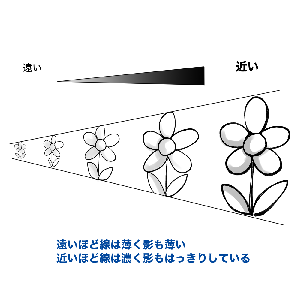 在插图中,您可以通过为较近的线绘制较粗的线,为较远的线绘制较细的线来获得透视感。