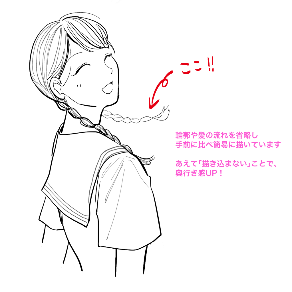 在这张照片中,我没有“敢”在发辫后面画出发束。