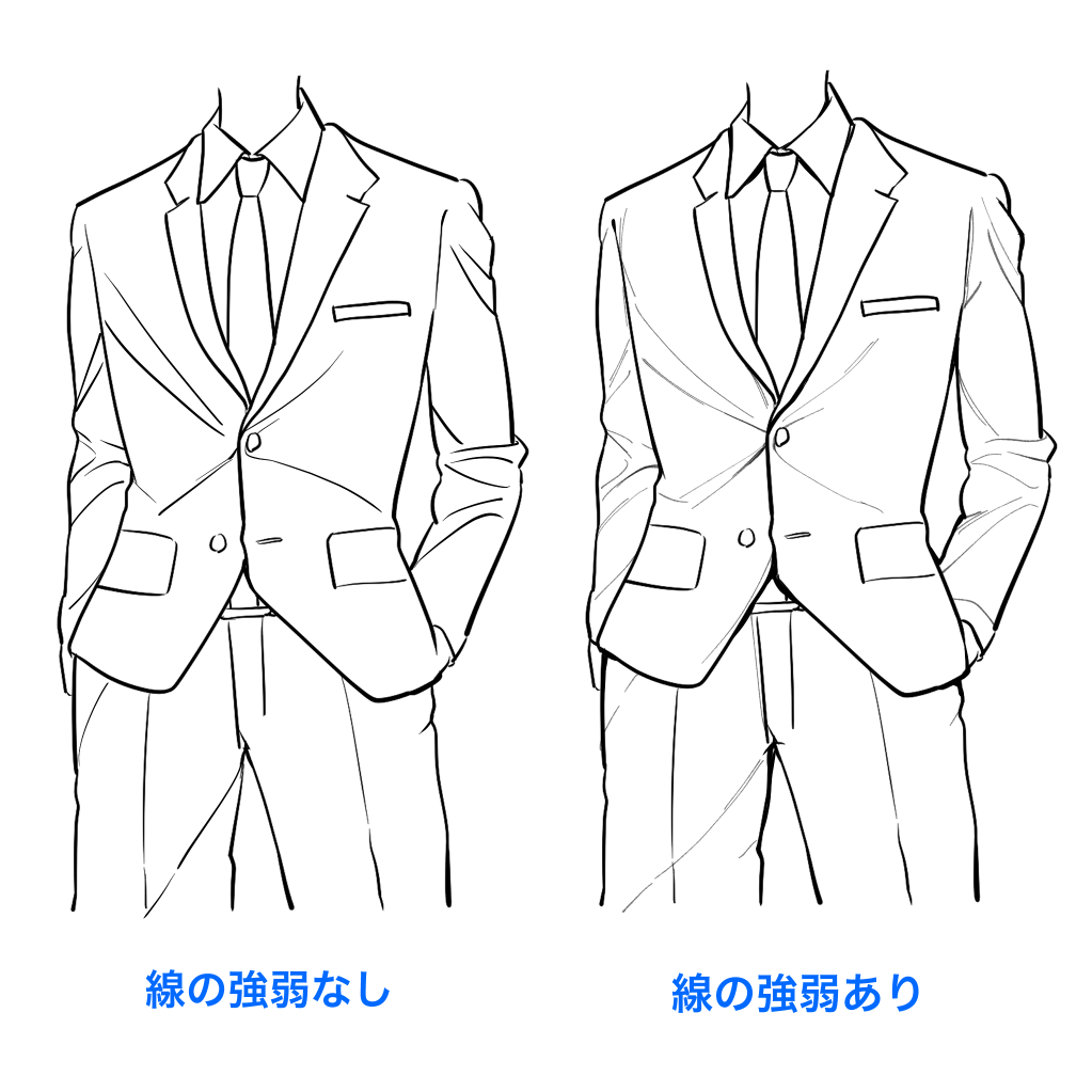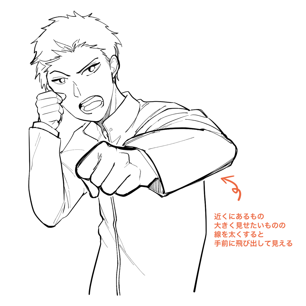 特别是,如果你想用你想要突出的部分来绘制构图,比如伸出手的姿势、胆量的姿势或抬腿的姿势,加粗线条使其看起来有点over 会使插图突出。所以我推荐它。