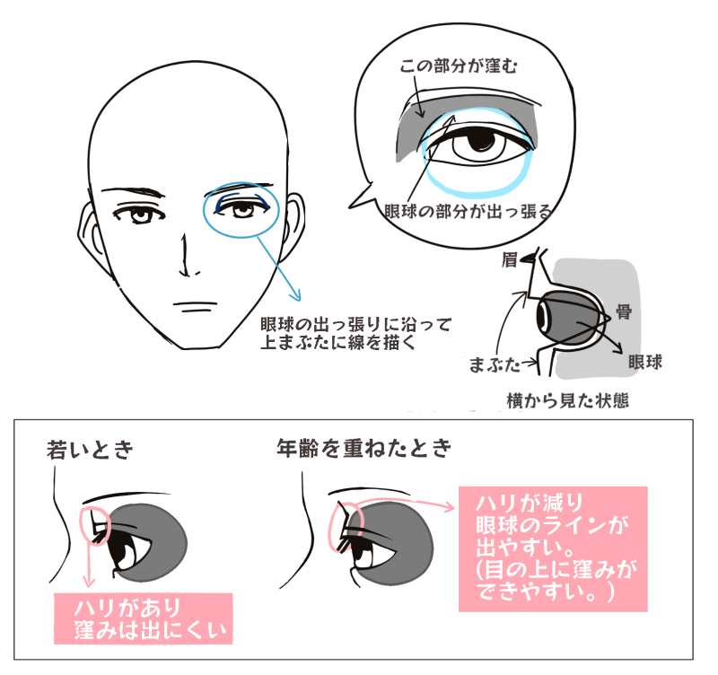 随着年龄的增长,眼睛的紧张感会降低,眼睛的上部往往会凹陷。