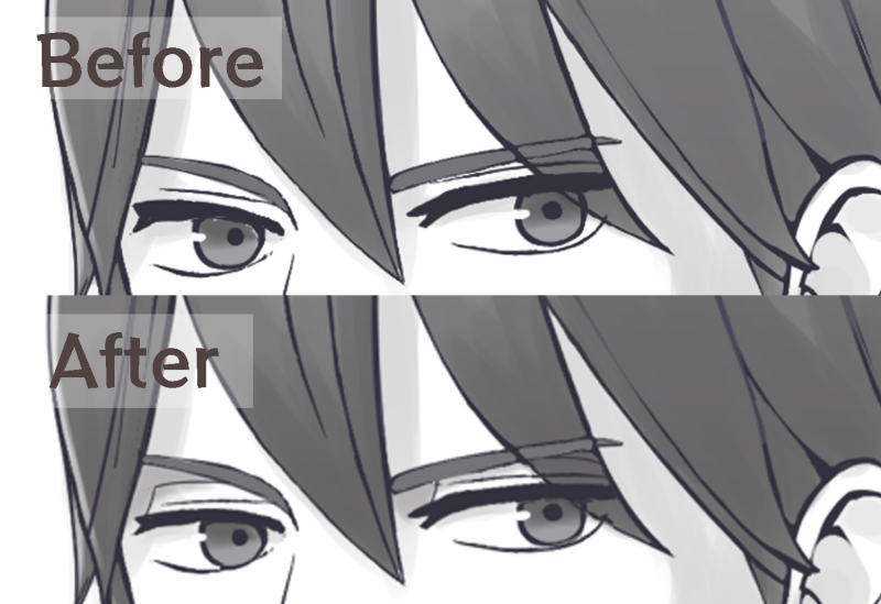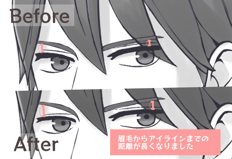 因此,改变画弧形的上眼睑,使其覆盖眼睛略微平坦。